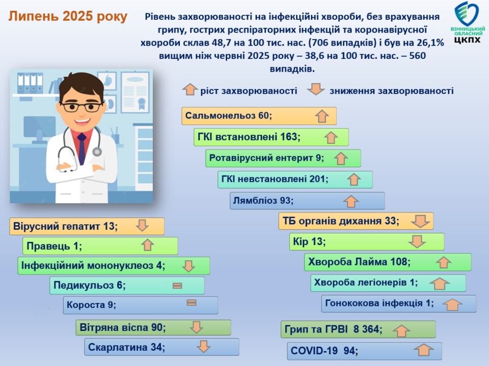 ІНФЕКЦІЙНА ЗАХВОРЮВАНІСТЬ НА ВІННИЧЧИНІ: ОСНОВНІ СПОСТЕРЕЖЕННЯ У ЛИПНІ 2025 РОКУ