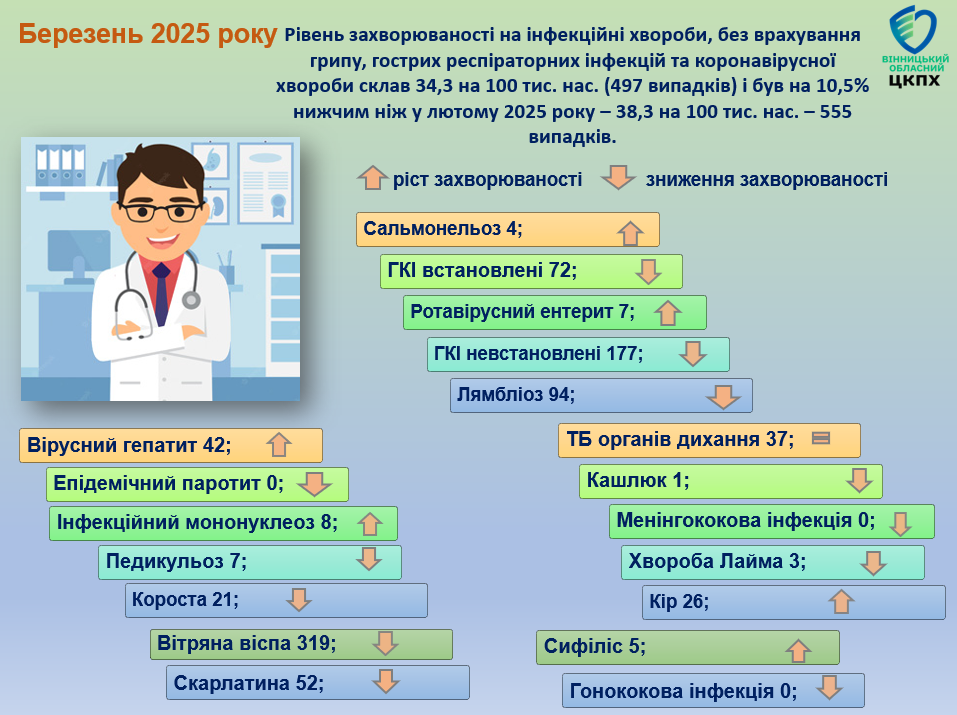 Інфекційні хвороби на Вінниччині: основні спостереження у березні 2025 року