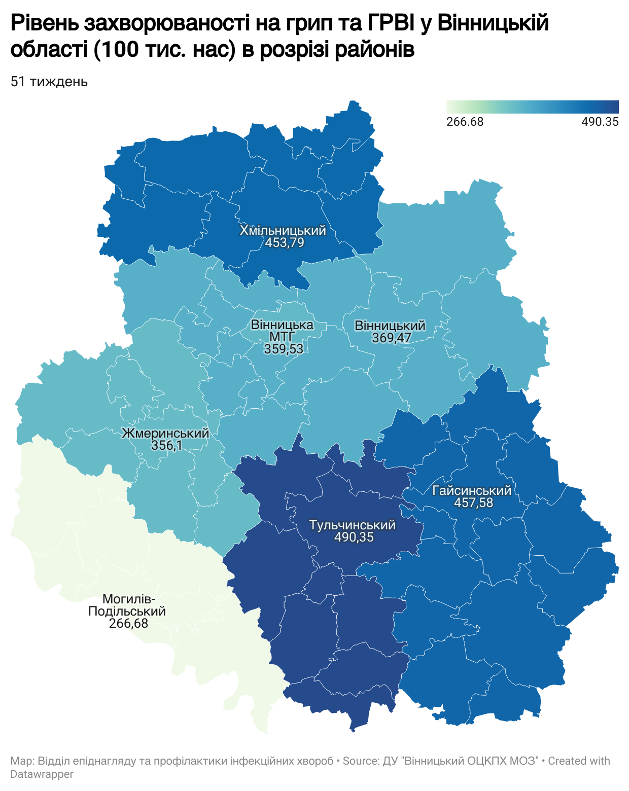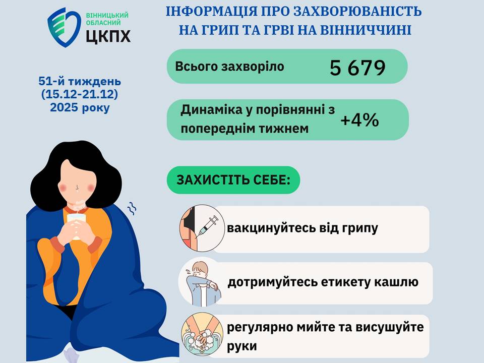 Інформація щодо захворюваності на грип, COVID-19 та інші ГРВІ на Вінниччині