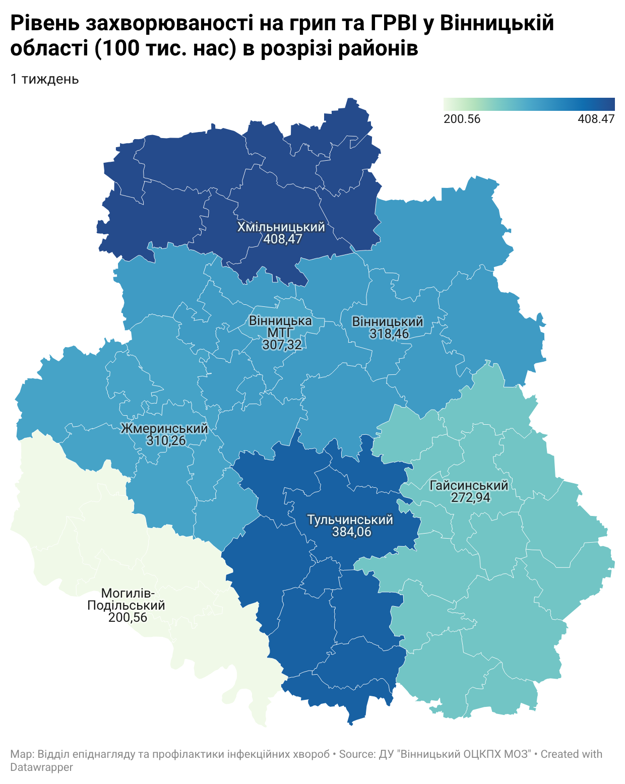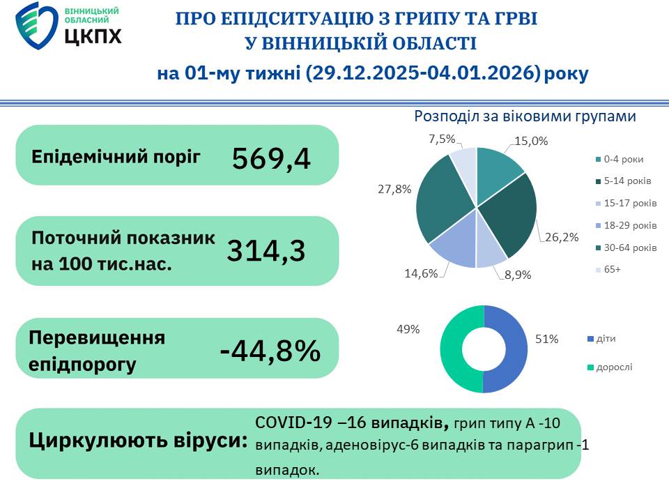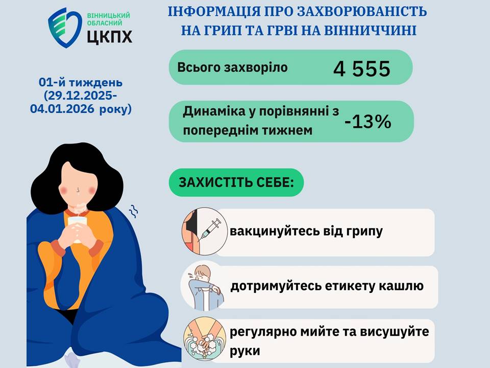 Інформація щодо захворюваності на грип, COVID-19 та інші ГРВІ на Вінниччині