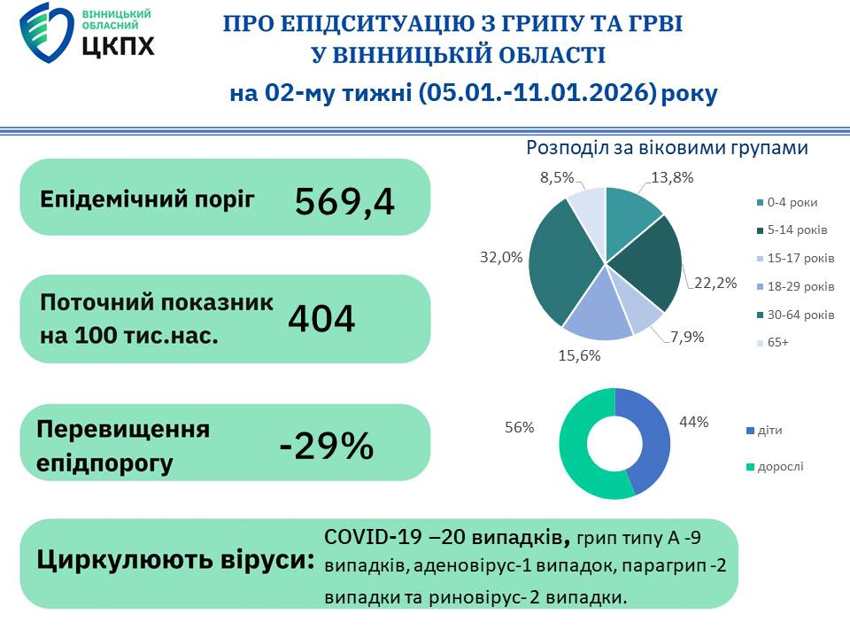 Інформація щодо захворюваності на грип, COVID-19 та інші ГРВІ на Вінниччині
