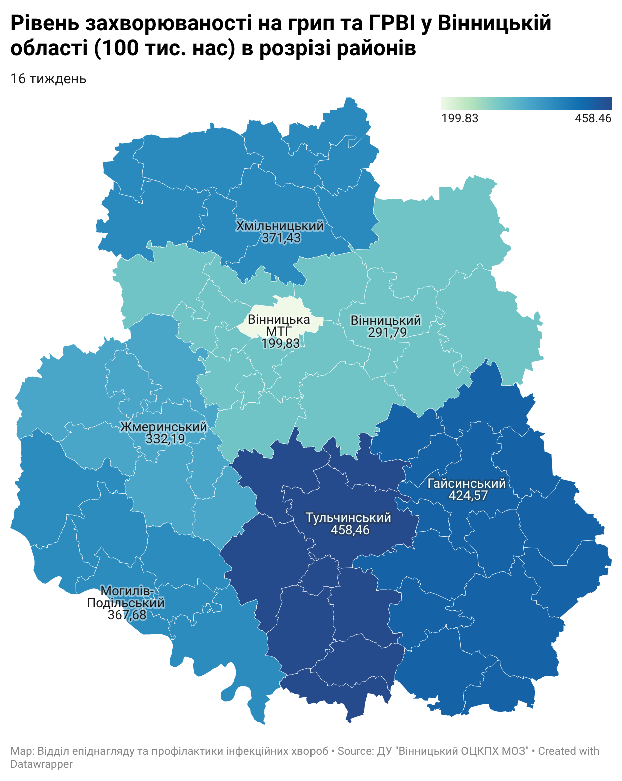 Інформація щодо захворюваності на грип, COVID-19 та інші ГРВІ на Вінниччині