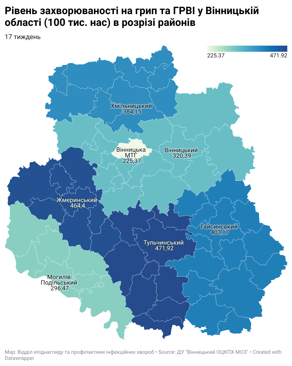 Інформація щодо захворюваності на грип, COVID-19 та інші ГРВІ на Вінниччині