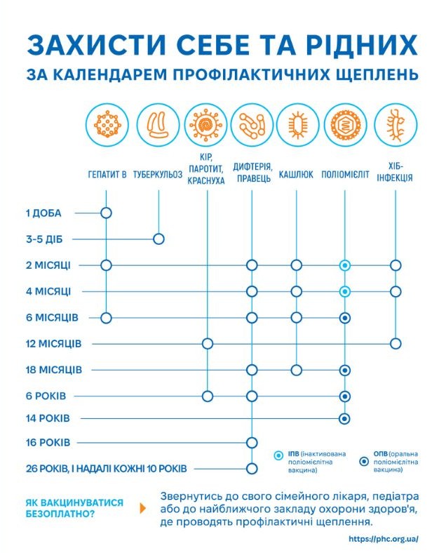 Національний календар профілактичних щеплень передбачає безоплатний захист дітей від 10 інфекційних хвороб: