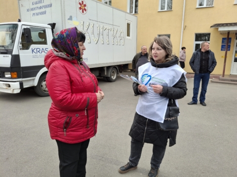 27 березня 2025Сьогодні у місті Гнівані Вінницького району працювала мультидисциплінарна команда фахівців Вінницького обласного центру контролю та профілактики хвороб, Подільського регіонального центру онкології та Вінницького обласного клінічного фтизіопульмонологічного центру. Біля ЦПМСД Гніванської міської ради було розгорнуто «Майданчик здоров’я». Тут усі охочі могли зробити тестування на COVID-19, виміряти артеріальний тиск і рівень цукру в крові, визначити індекс маси тіла, зробити електрокардіограму, вакцинуватися від дифтерії та правця. У мобільній амбулаторії ОЦКПХ відбувалося тестування на вірусні гепатити, ВІЛ / СНІД, пройти скринінгове анкетування на туберкульоз. Поруч працював пересувний мамограф «Квітка», де жінок Гніванської громади обстежували на онкопатологію молочних залоз. Крім того, у приміщенні ЦПМСД рентгенолог мобільної команди проводив флюорографічне обстеження.