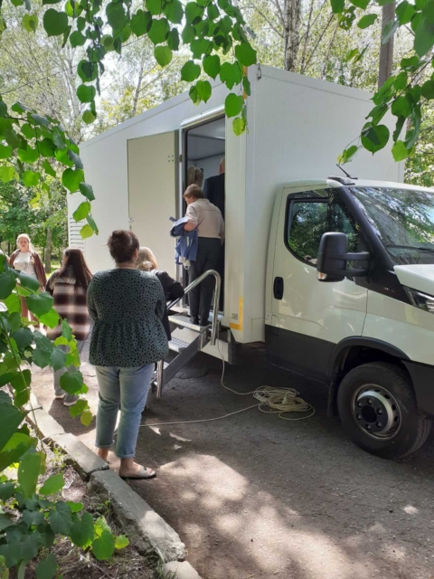 До мобільної амбулаторії, де проводилися тестування на ВІЛ і гепатити, досить швидко вишикувалася черга. Чимало тих, хто здав кров на аналіз, чекаючи результатів, ішли на інші обстеження. Дізнавшись, що можна швидко й безоплатно отримати кілька важливих послуг, деякі відвідувачі нашого майданчика здоров’я телефонували родичам і друзям: радили теж скористатися такою нагодою.