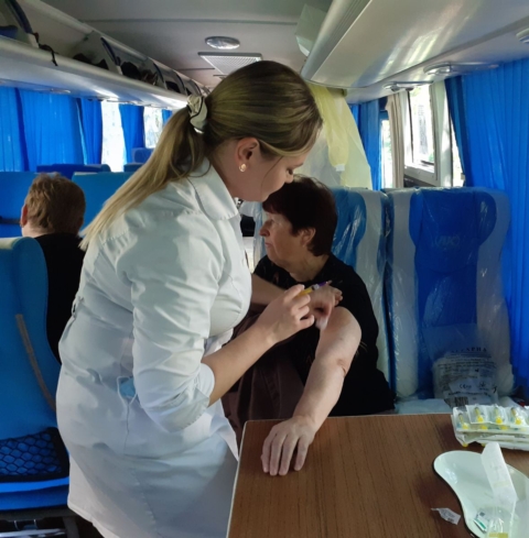 Лікарі відділу імунопрофілактики і відділу епідеміологічного нагляду та профілактики неінфекційних хвороб проводили тематичні опитування й розповідали про те, які медичні послуги можна отримати у вакцинобусі та в мобільній амбулаторії.