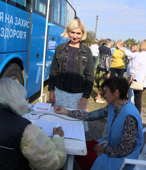 Ця привітність стосувалась не лише теплої погоди, але й жителів громади, які охоче відвідали наш “Майданчик здоров’я”. Це кілька медичних локацій, де надають необхідні послуги: у Вакцинобусі – щеплення, поряд – консультації лікарів, перевірка рівня цукру в крові, тестування на COVID-19, ЕКГ та флюорографія.