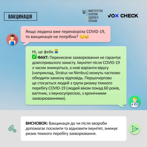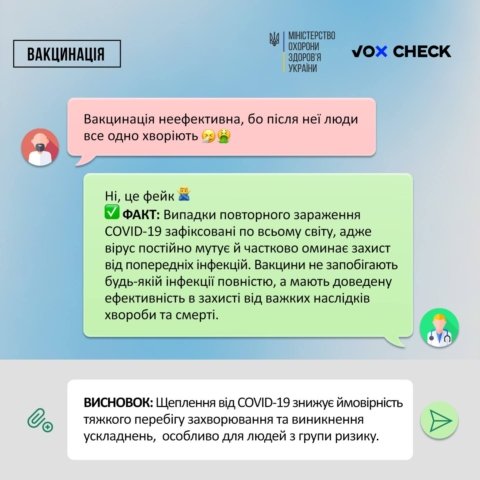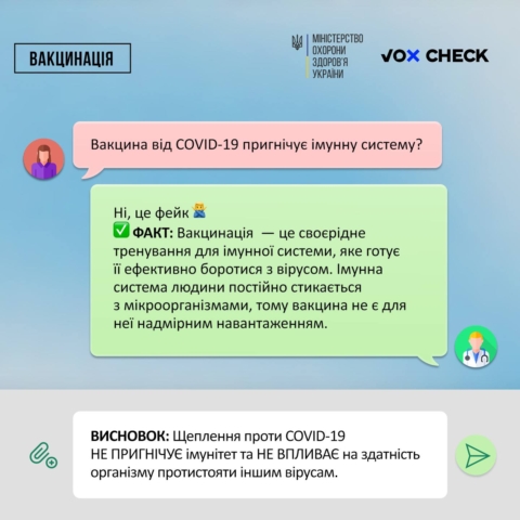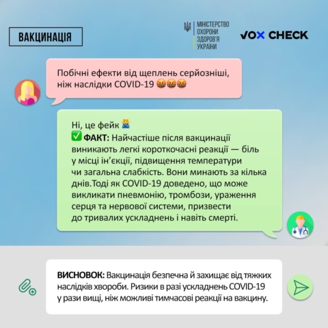 Правдиві дані — це ваш захист. Разом з командою фактчекерів VoxCheck зібрали та спростували найпоширеніші фейки, які з’явилися у соціальних мережах довкола вакцинації від COVID-19. Зберігайте та поширюйте лише правдиві факти.