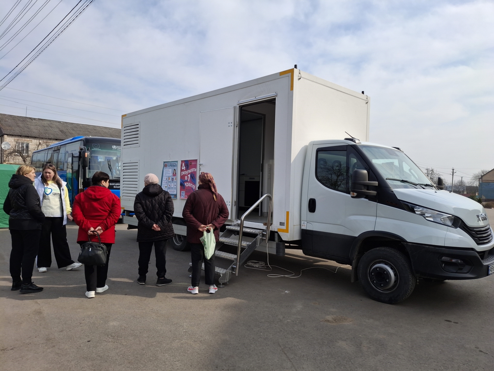 За час роботи мобільної амбулаторії 34 жителів Могилівки було обстежено на ВІЛ, 19 – на гепатит С, водночас 34 людей пройшли також опитування за скринінговими анкетами на туберкульоз.