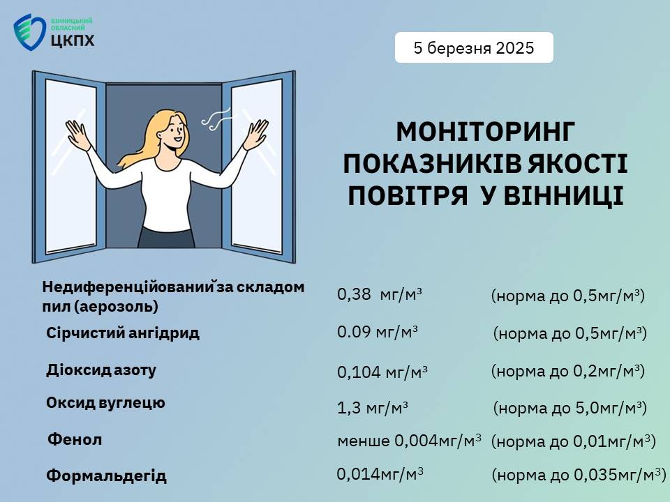 5 березня 2025Вінницький обласний центр контролю та профілактики хвороб продовжує проводити дослідження якості повітря у Вінниці.
