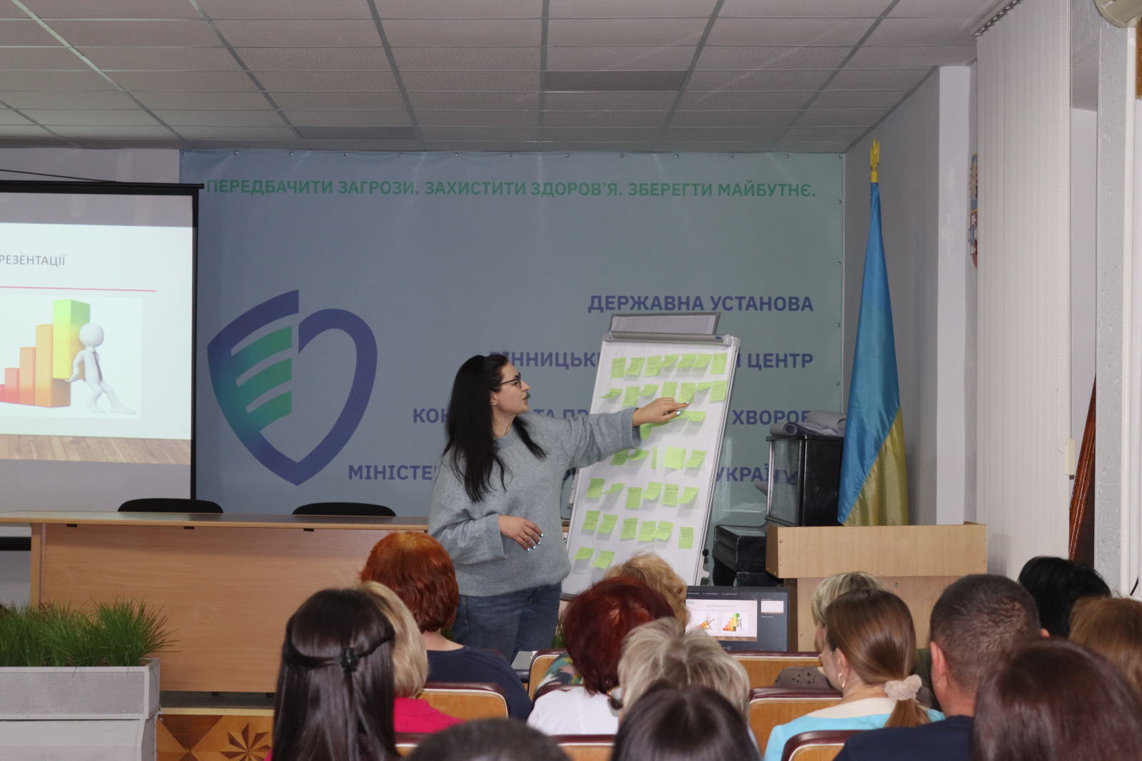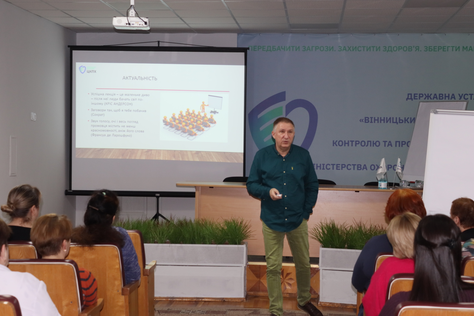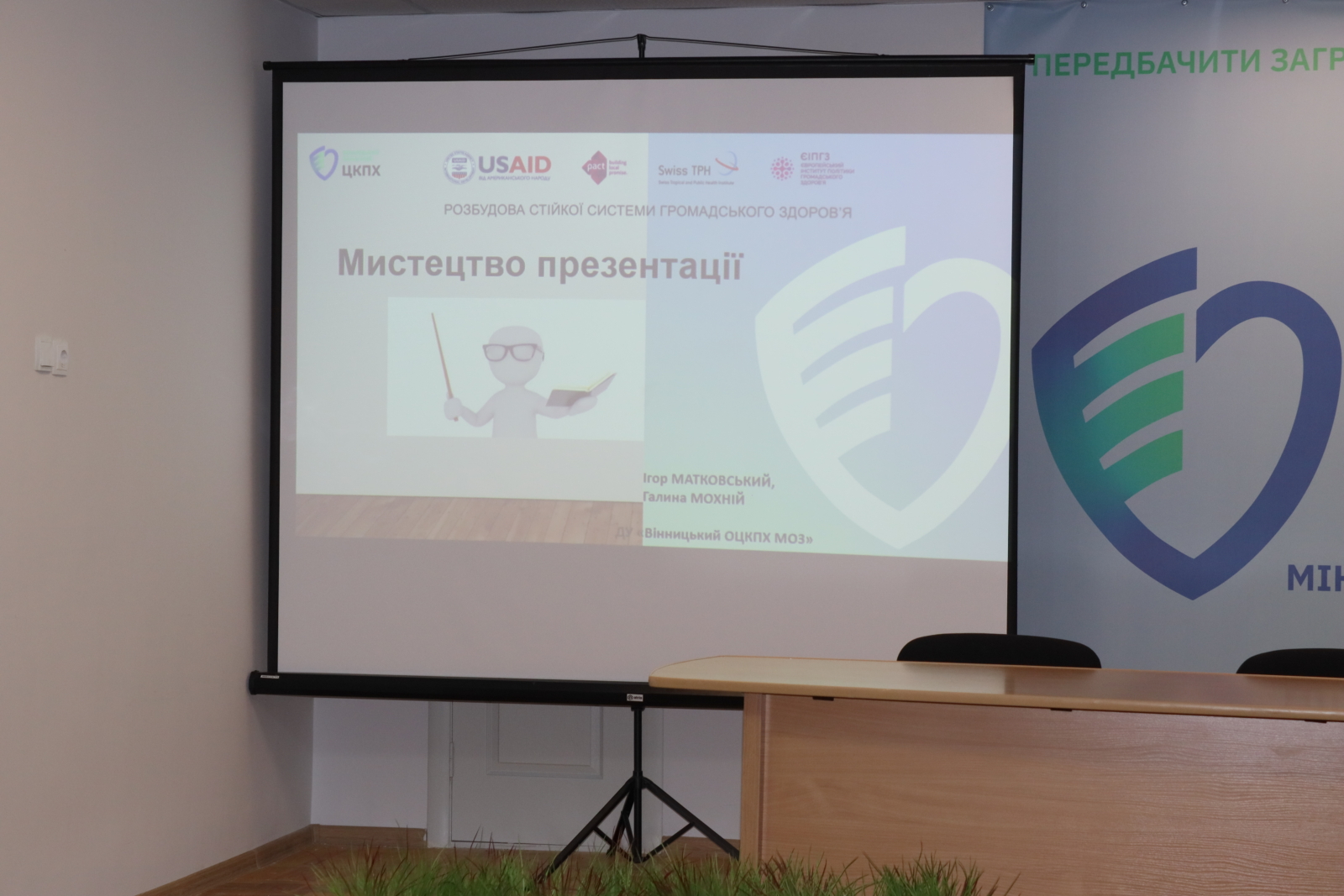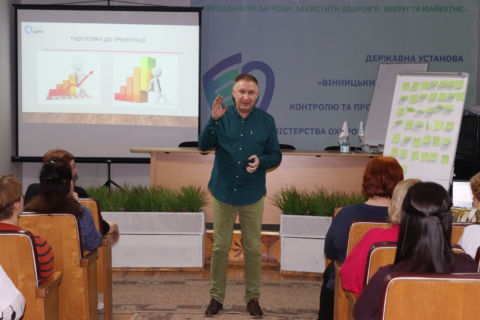 Генеральний директор ОЦКПХ Ігор Матковський, заступник генерального директора із впровадження системи управління якістю лабораторних досліджень Галина Мохній і лікар-методист, відповідальна за проведення навчальних заходів, Ірина Головіна провели в установі тренінг «Мистецтво презентації». Це перший навчальний захід із серії тренінгів для тренерів.