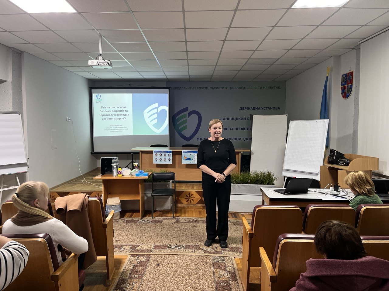 Черговий тренінг на тему «Впровадження покращення гігієни рук у закладах охорони здоров’я» відбувся у Вінницькому ОЦКПХ в рамках заходів безперервного професійного розвитку. Він зібрав представників всіх лікарських і фармацевтичних спеціальностей, а також всіх спеціальностей професіоналів і фахівців у сфері охорони здоров’я.