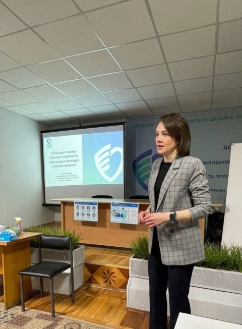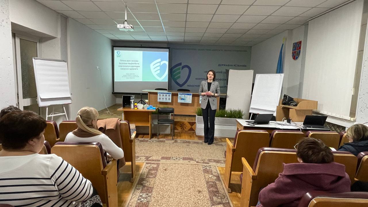 Вітаючи учасників тренінгу, заступниця генерального директора Галина Мохній зазначила, що попри розвиток і досягнення медичної науки, гігієна рук – найпростіший, найдешевший і найефективніший спосіб профілактики інфекцій, пов’язаних із наданням медичної допомоги.