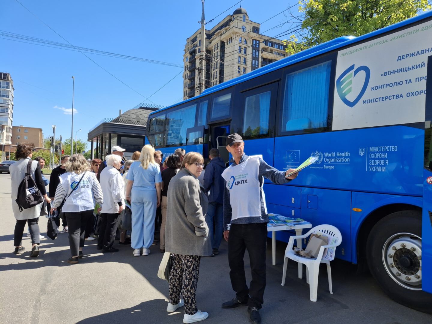 2 травня 2025В рамках Всесвітнього та Європейського тижня імунізації у Вінниці працювала фахова команда мобільної амбулаторії та вакцинобуса Вінницького обласного центру контролю та профілактики хвороб. Спільно з колегами з Вінницького обласного клінічного високоспеціалізованого ендокринологічного центру та КНП «Центр первинної медико-санітарної допомоги №3» на проспекті Космонавтів було організовано «Майданчик здоров’я». Учасниками медичної акції стали близько 600 вінничан і гостей міста.