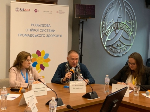 Генеральний директор Вінницького ОЦКПХ Ігор Матковський, а також іще двоє представників Вінниччини – заступниця директора департаменту охорони здоров’я Вінницької обласної державної адміністрації Тетяна Бондаренко і заступниця жмеринського міського голови Ольга Боровська – взяли участь у дискусії «Кращі практики впровадження спільних заходів для покращення здоров’я на рівні громад».