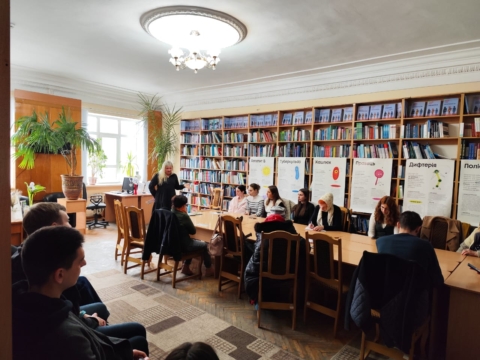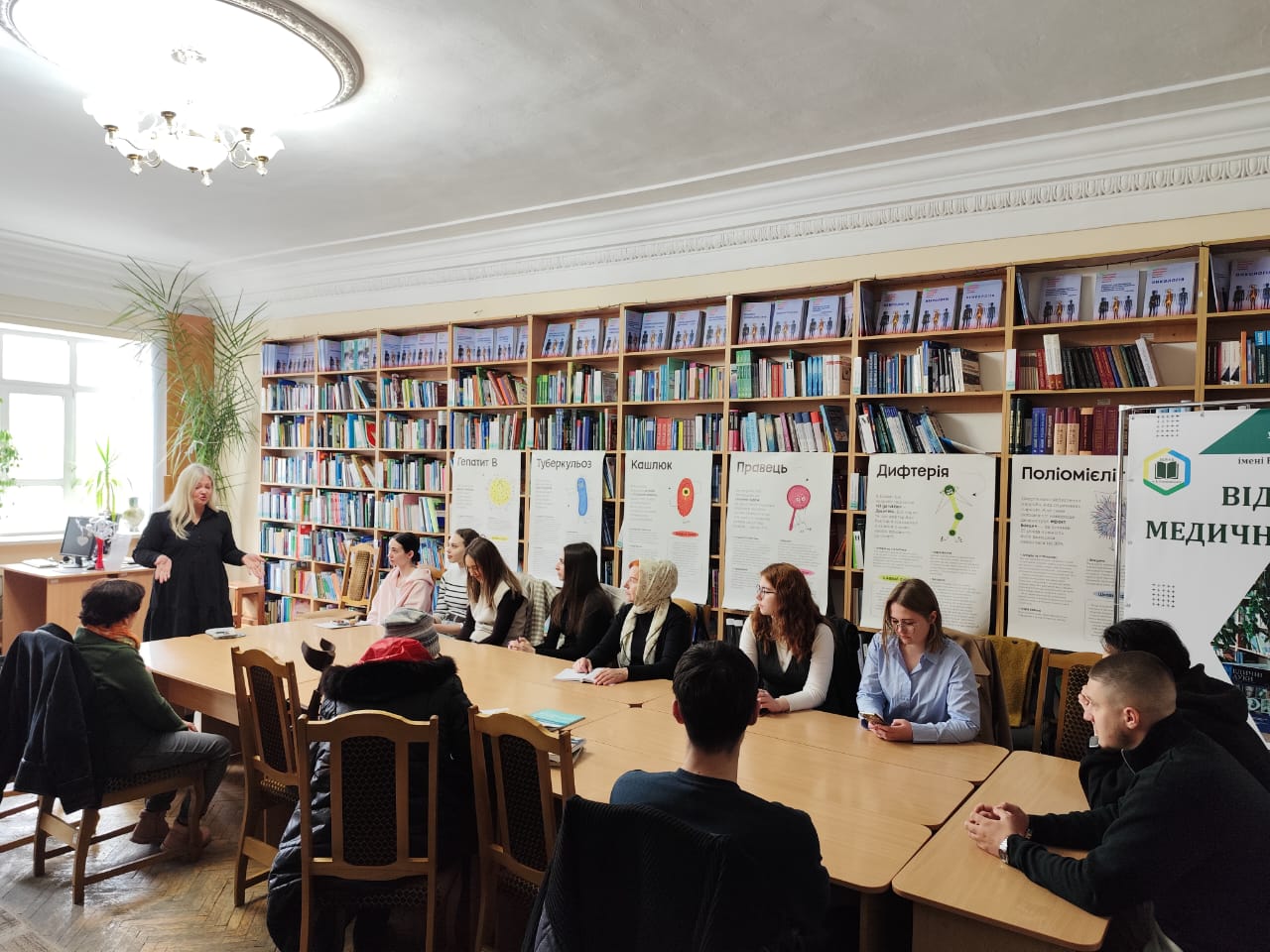 – Минулого тижня я проводила гру-квест і лекцію для дітей, а сьогодні в розмові брали участь дорослі – студенти медичного університету, а також інші читачі бібліотеки. Говорили про вакцинокеровані інфекції, про вакцинацію за Національним календарем профілактичних щеплень і про щеплення, які не передбачені календарем, але які варто зробити, щоб уберегтися від небезпечних хвороб. Приємно, що студенти ставили запитання суто професійні, адже вони майбутні медики: їм треба не тільки знати все про щеплення, а й уміти спростовувати антивакцинальні міфи, переконувати пацієнтів у необхідності імунізації, – розповіла Наталія Гриньова.