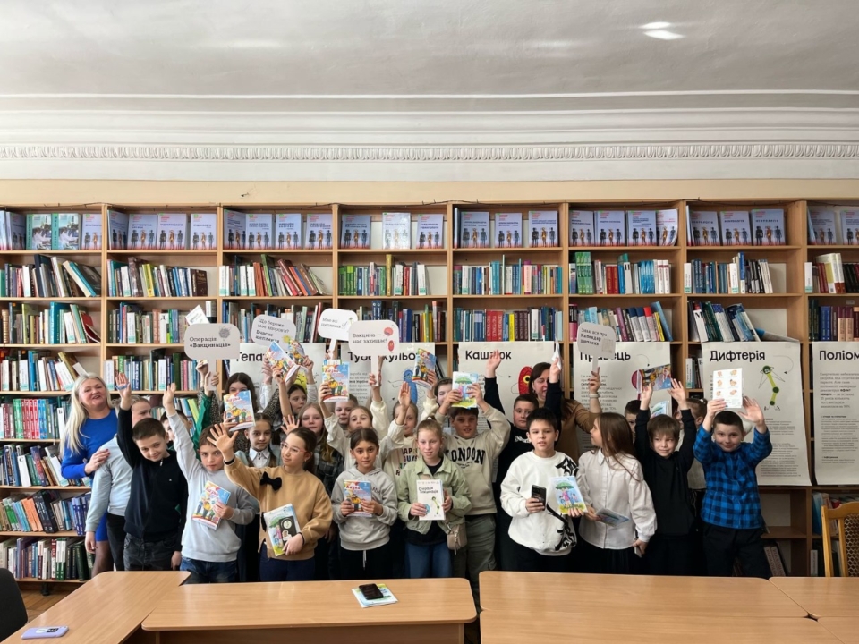 Два дні поспіль у бібліотеці відбувалася квест-гра, яку проводила лікар-епідеміолог Вінницького ОЦКПХ Наталія Гриньова для школярів молодших класів, а поруч із бібліотекою працювала фахова команда вакцинобуса та мобільної амбулаторії Вінницького обласного центру контролю та профілактики хвороб.