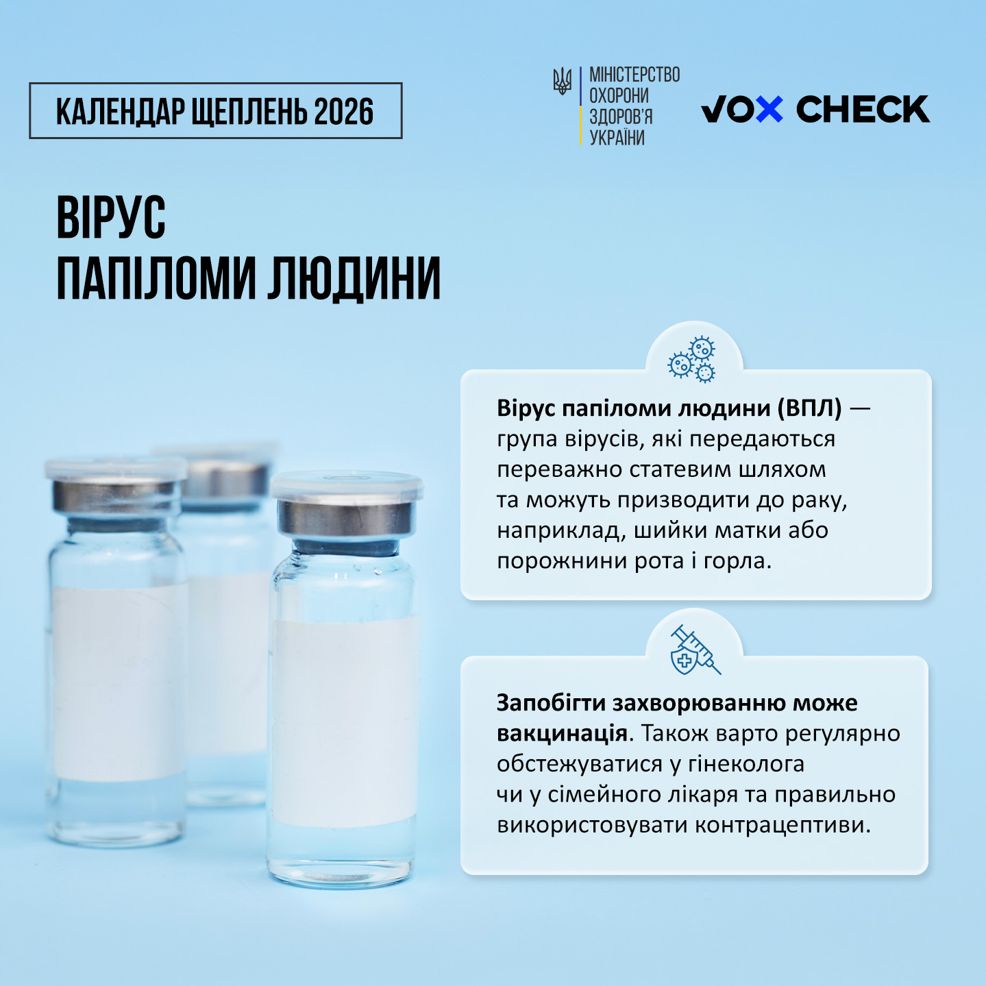 Вакцинуватися. З 1 січня 2026 року вакцинація проти ВПЛ-інфекції розпочнеться в Україні і буде безоплатною для дівчат 12-13 років включно.