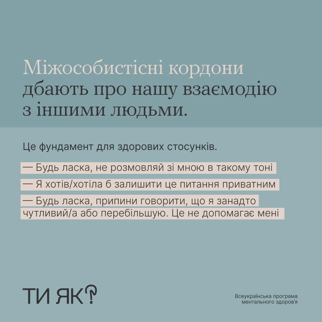 Існують різні типи особистих кордонів, і кожен з яких дуже важливий для нашого щастя. У каруселі говоримо про пʼять з них.