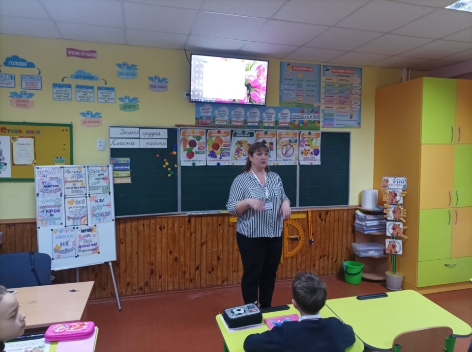 Інна Кудлаєнко, лікарка відділу епідеміологічного нагляду та профілактики неінфекційних хвороб провела лекцію на тему «Основи здорового харчування» для учнів 4-Б класу Вінницького ліцею № 20.