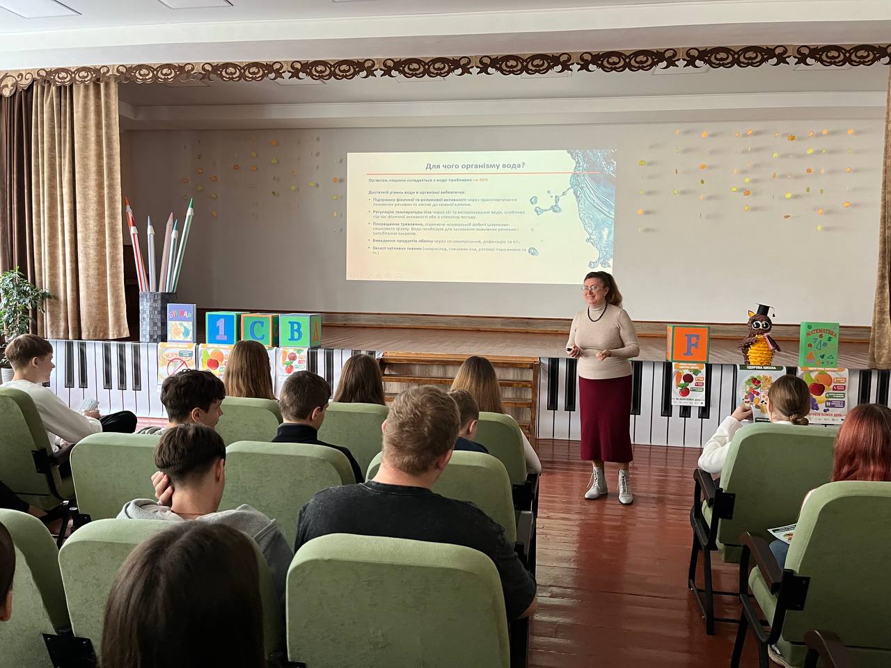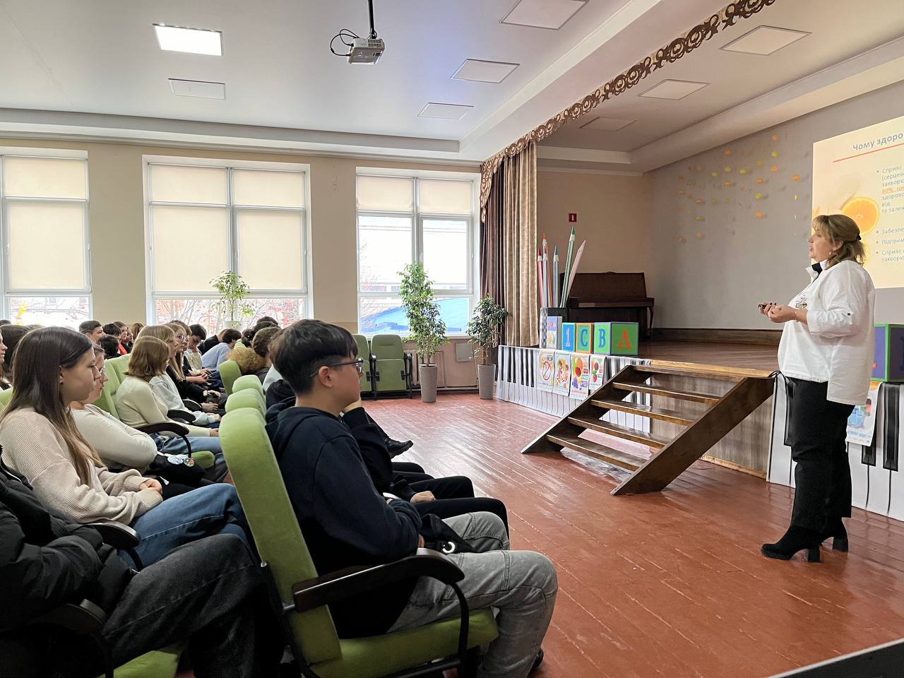 Під час інтерактивної лекції учні дізнались якими корисними продуктами варто наповнювати свою щоденну тарілку здорового харчування, які кроки допоможуть споживати більш здорову їжу, а також про зміни в організмі, які відбудуться після відмови від шкідливої їжі.
