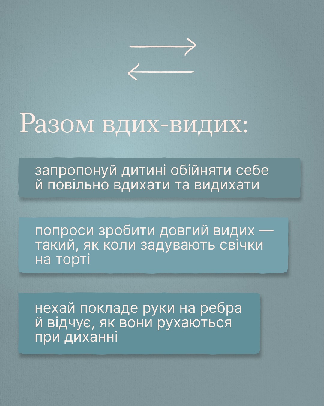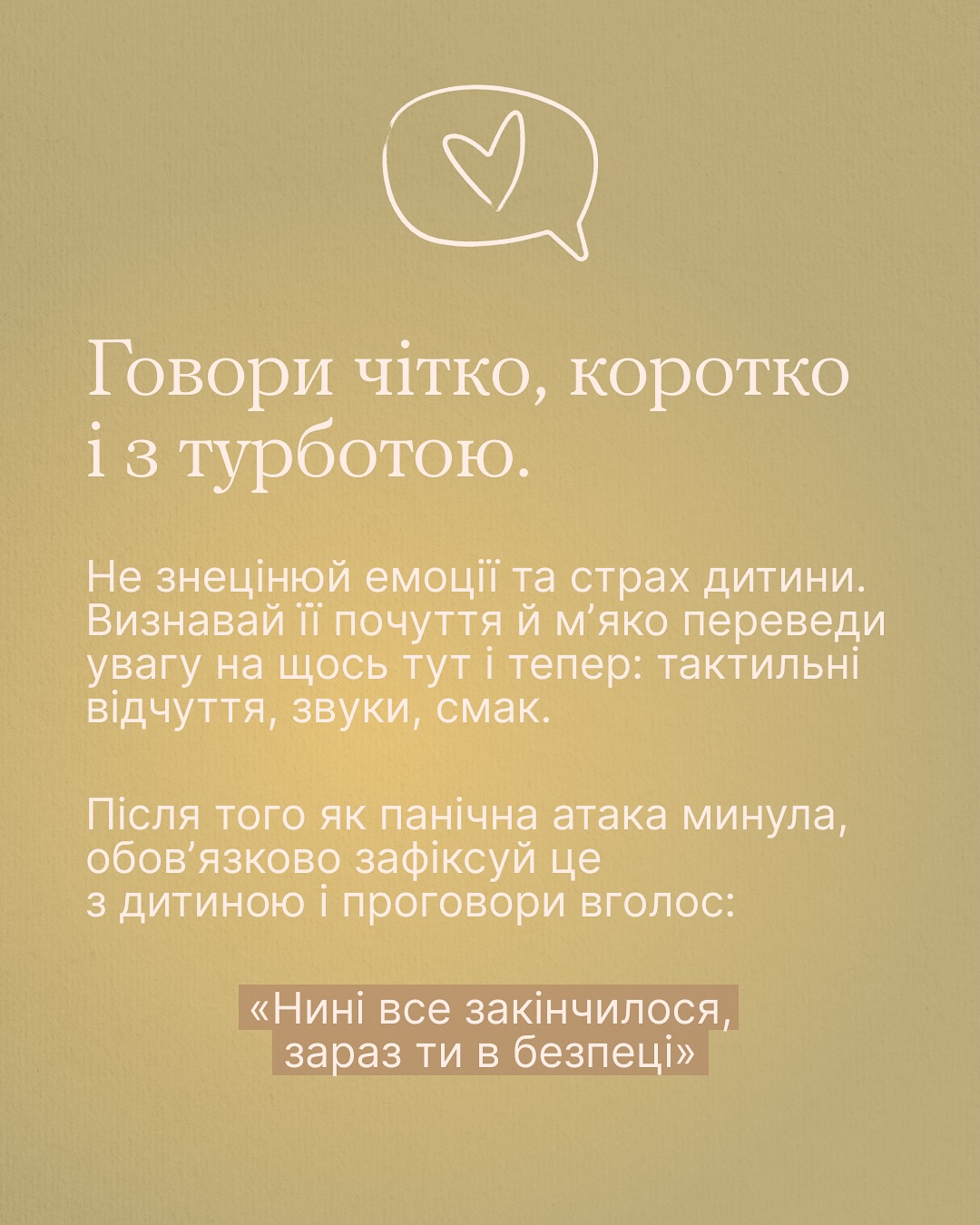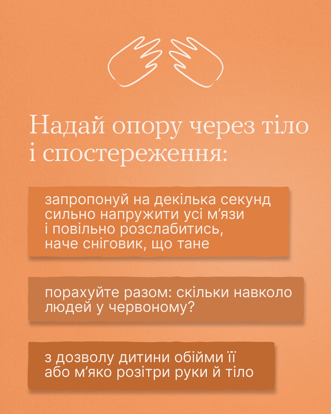 У каруселі зібрані прості дії, які допоможуть підтримати дитину під час панічної атаки.