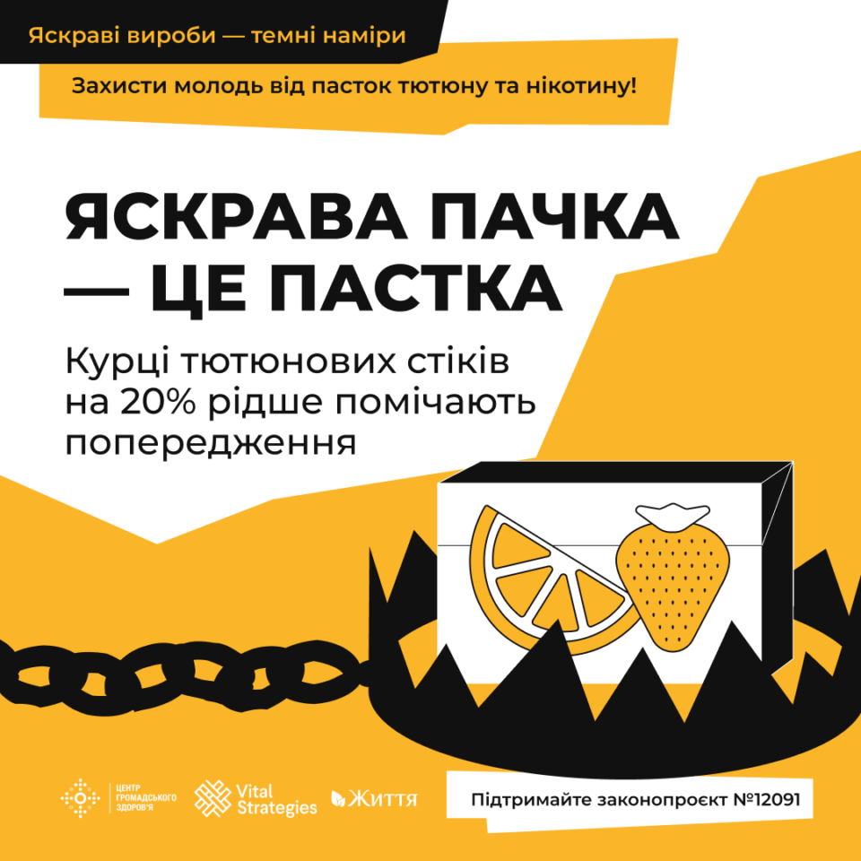 Законопроєкт №12091 пропонує впровадити на упаковках тютюнових стіків комбіновані медичні попередження — текст та графічне зображення на 65% площі.