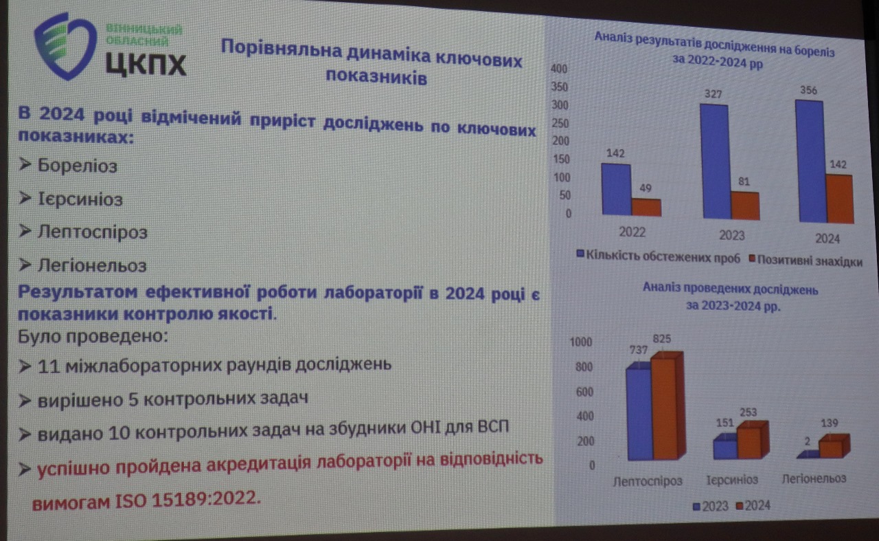 Про дослідження, проведені в лабораторіях у 2024 році, звітували завідувачка мікробіологічної лабораторії Олена Юнусова, завідувачка вірусологічної лабораторії Валентина Князєва, завідувачка паразитологічної лабораторії Жанна Маріянко і завідувачка лабораторії особливо небезпечних інфекцій Людмила Скорук.