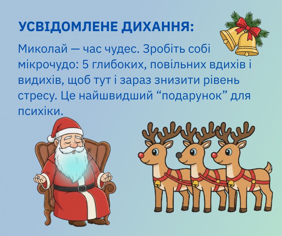 З Днем Святого Миколая! Дбайте про своє ментальне здоров’я та бережіть свій спокій.