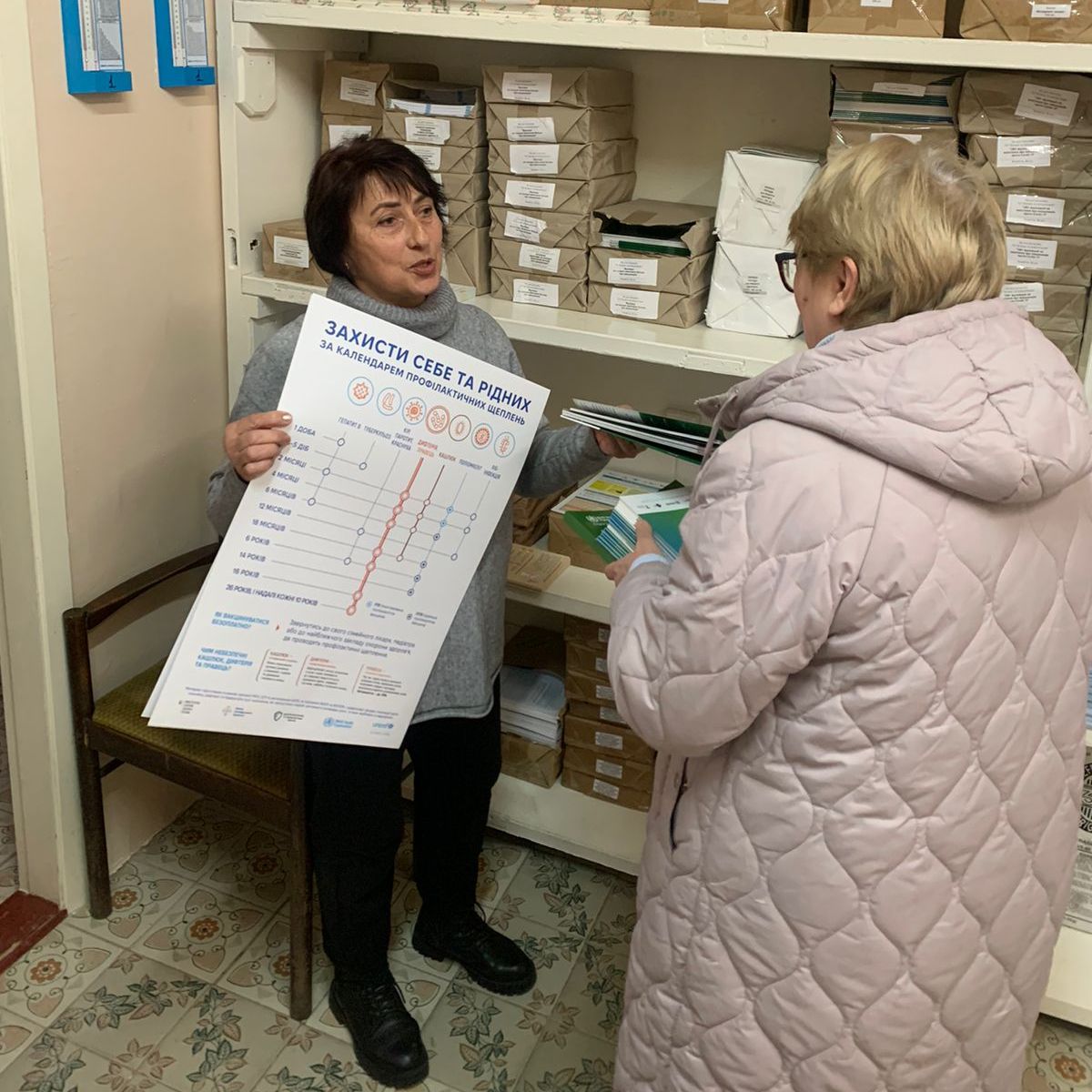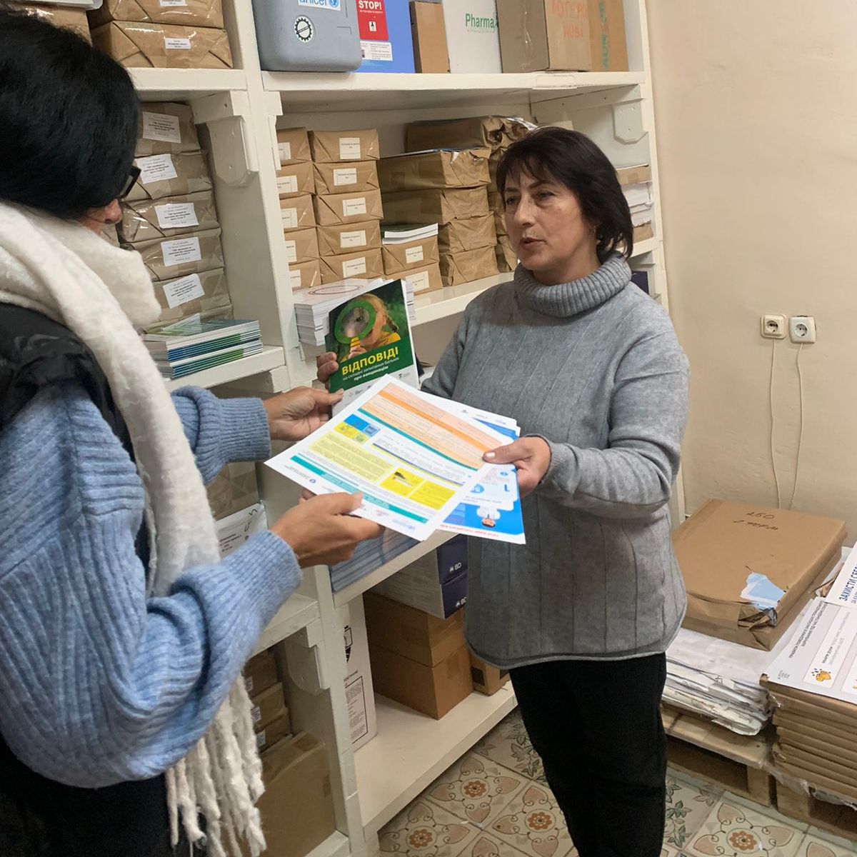 Лікарі відділу імунопрофілактики Вінницького обласного центру контролю та профілактики хвороб передають просвітницьку літературу з популяризації вакцинації медикам первинної ланки охорони здоров’я. Друковані матеріали від Центру громадського здоров’я допомагають медикам у щоденній роз’яснювальній роботі.