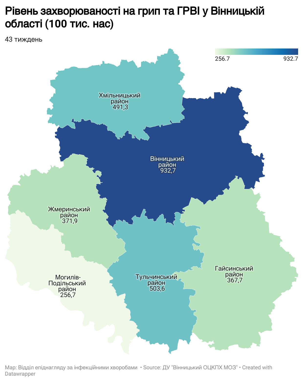 Базовий рівень захворюваності на грип та гострі респіраторні вірусні інфекції не перевищувався ні в одному районі Вінницької області.