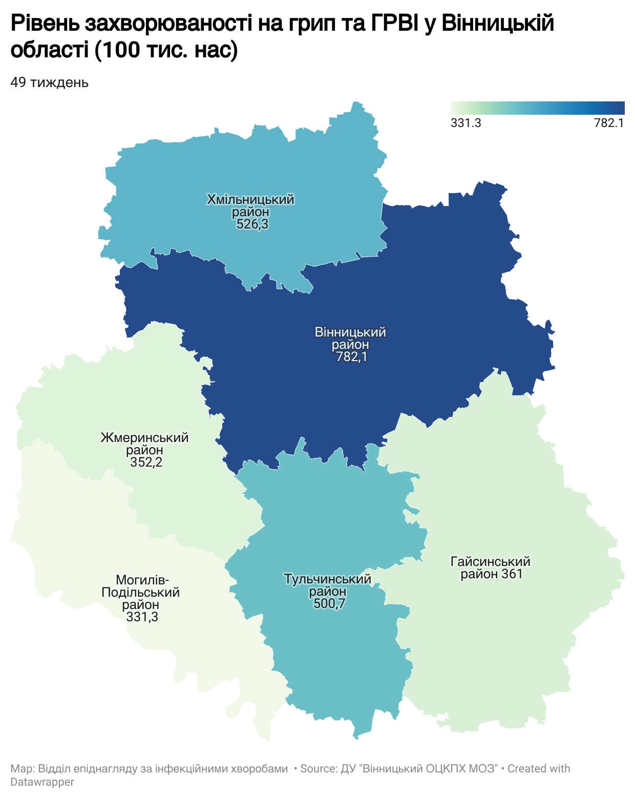 Базовий рівень захворюваності на грип та гострі респіраторні вірусні інфекції не перевищувався ні в одному районі Вінницької області.