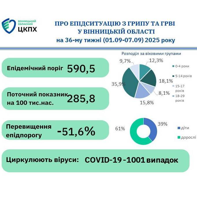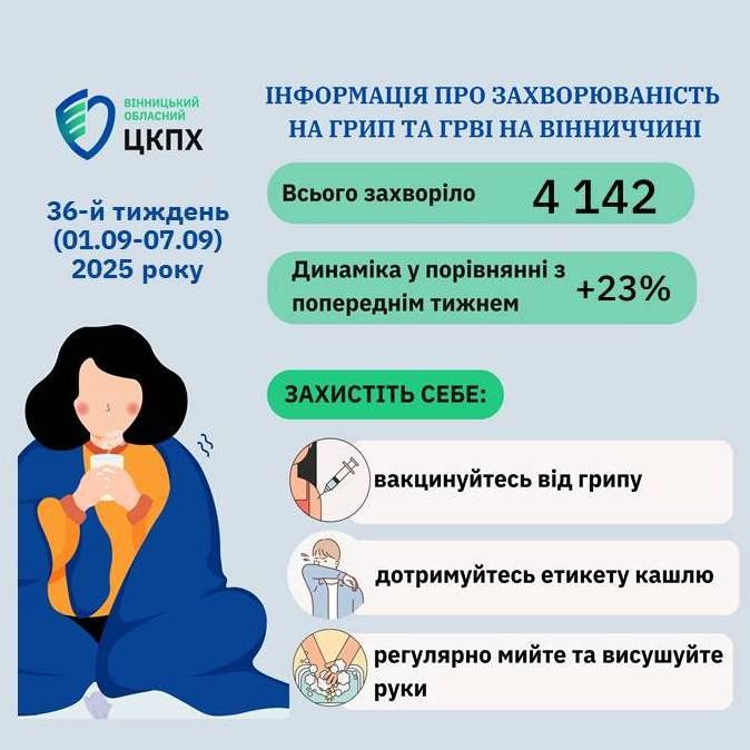 Про епідситуацію з грипу, COVID-19 та інших ГРВІ на Вінниччині станом на 08.09.2025 р.