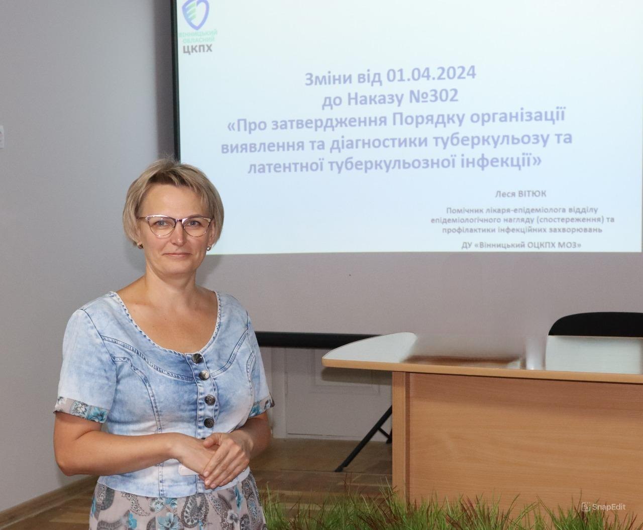 Спікерами зустрічі були завідувач відділу інформаційно-аналітичного відділу КНП “Вінницький обласний клінічний фтизіопульмонологічний центр Вінницької обласної Ради” Ніна Гончар та помічник лікаря-епідеміолога відділу епідеміологічного нагляду (спостереження) та профілактики захворювань ДУ “Вінницький обласний центр контролю та профілактики хвороб” Леся Вітюк.