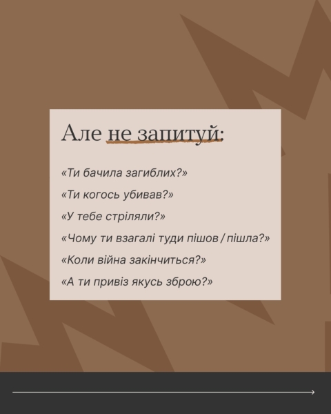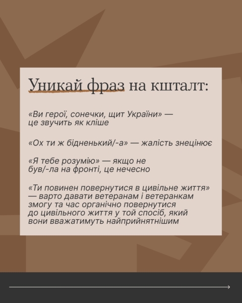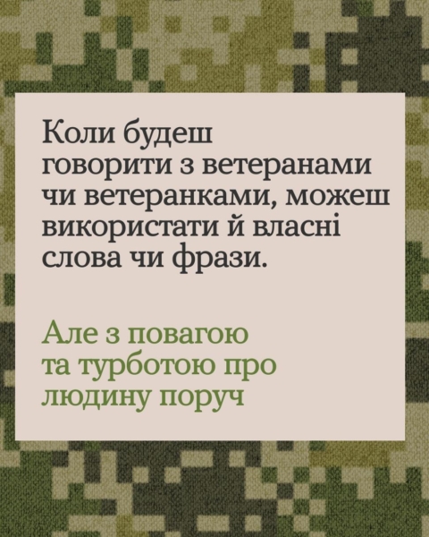 19 лютого 2026Якщо переживаєш, що в розмові з ветераном чи ветеранкою можеш сказати щось не те — читай карусель