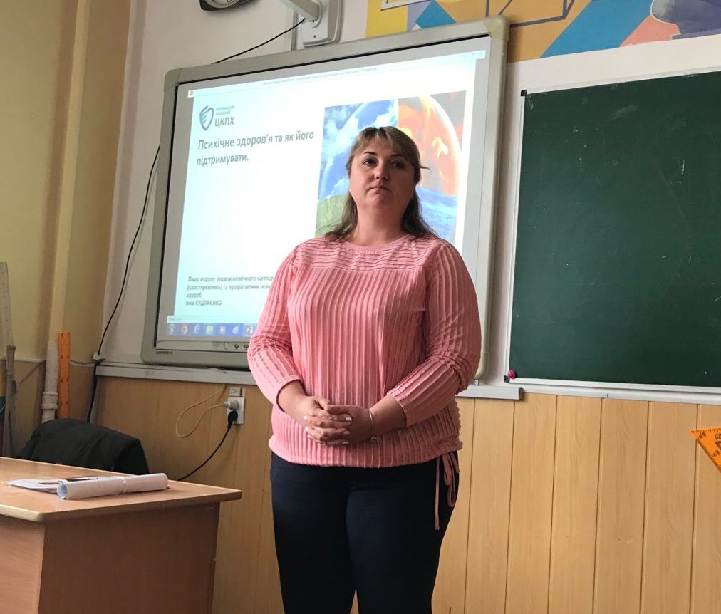 Зі школярами та ліцеїстами спілкувалась Інна Кудлаєнко – лікар загальної гігієни відділу епідеміологічного нагляду (спостереження) та профілактики неінфекційних хвороб Вінницького обласного центру контролю та профілактики хвороб.