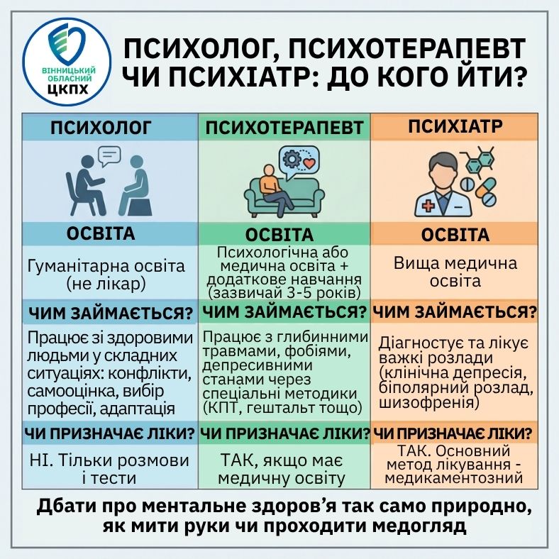 Часто ми відкладаємо турботу про свій внутрішній стан лише тому, що не знаємо, до кого саме звернутися. «А раптом мене поставлять на облік?» або «Хіба я хворий, щоб іти до лікаря?».