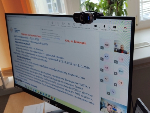 22 січня 2026Для оперативного обміну актуальною інформацією про події, що можуть становити загрозу для громадського здоров’я, сьогодні фахівці Вінницького обласного центру контролю та профілактики хвороб на чолі з генеральним директором Ігорем Матковським взяли участь в онлайн-засіданні Оперативного центру реагування на надзвичайні ситуації ДУ «Центр громадського здоров’я МОЗ України».