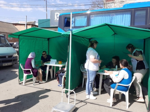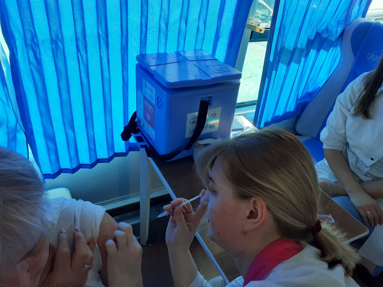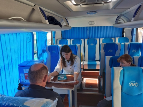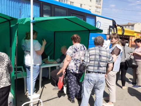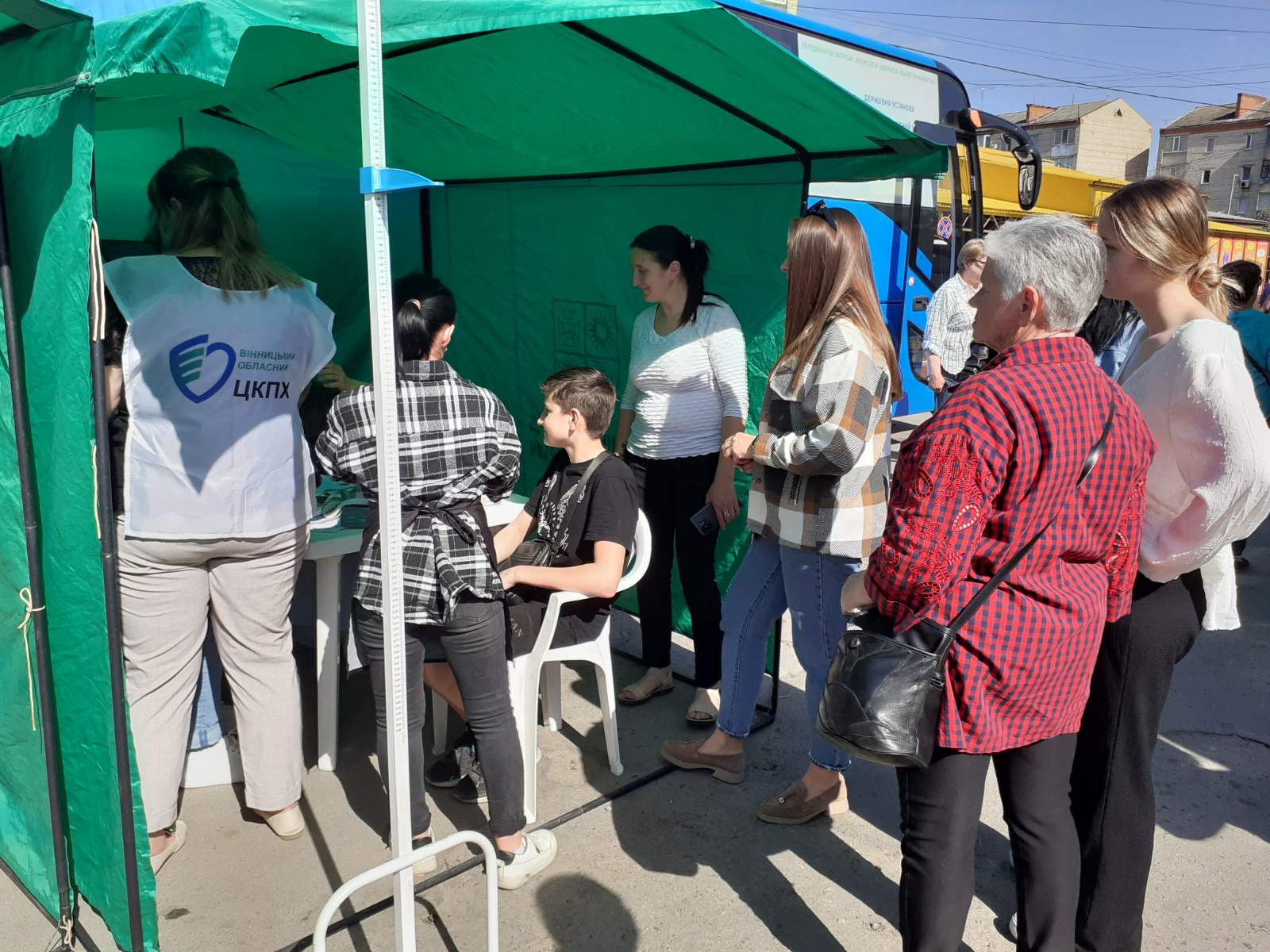 Вакцинобус стояв на площі біля автовокзалу, тож чимало людей цікавилися можливістю отримати медичні послуги безоплатно. Хотілося написати «і без черги», але черги періодично таки збиралися. Але команда ОЦКПХ пропонувала імпровізований «маршрут пацієнта», який дозволяв охочим пройти кілька обстежень і зробити щеплення, уникаючи черг.