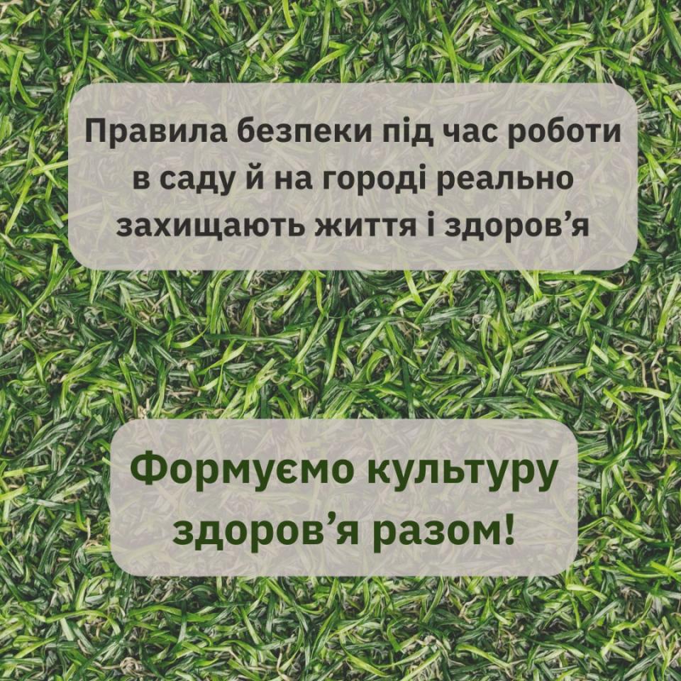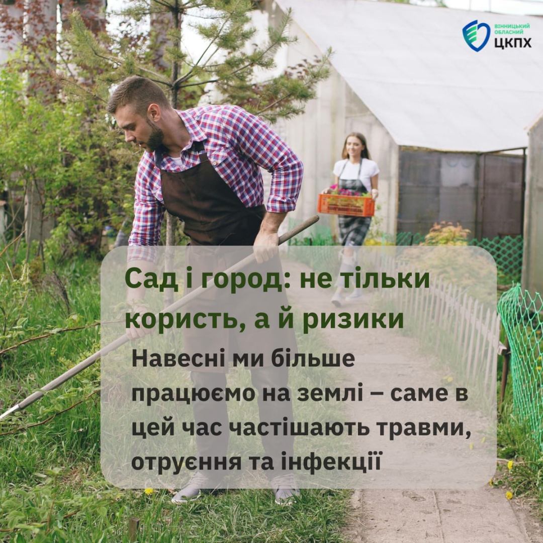 29 квітня 2026З настанням весни люди (особливо в сільській місцевості, але не тільки) масово працюють на городах, у садах, на дачних ділянках і квітниках: копають, садять, підживлюють рослини, обробляють їх від шкідників. Але разом із цим зростають і ризики для здоров’я: саме в цей період частіше трапляються отруєння, травми, загострюються хронічні хвороби, виникають інфекції, пов’язані з контактом із ґрунтом і водою.