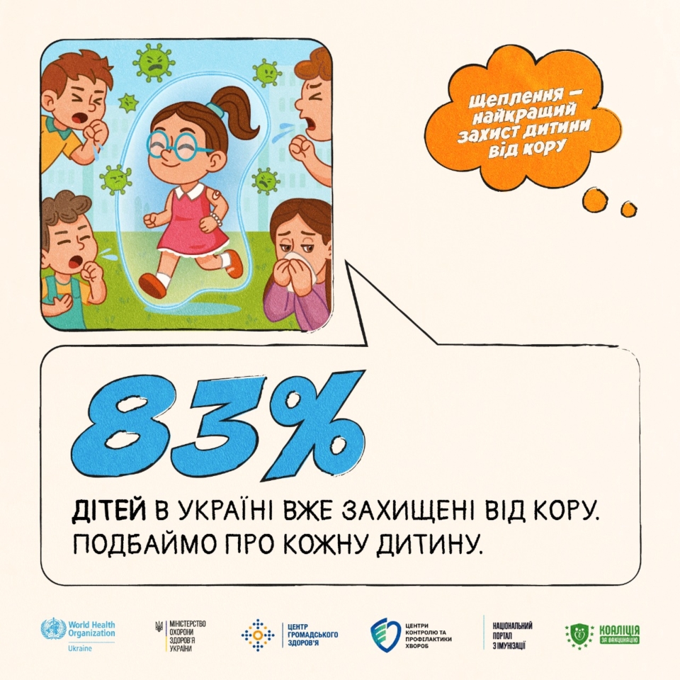 За даними Центру громадського здоров’я, 83% дітей в Україні вже отримали дві дози щеплення від кору минулого року, тепер вони можуть не боятися хвороби.