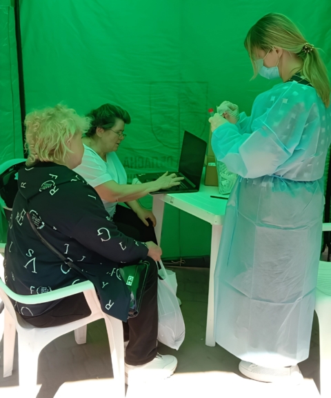 «Майданчик здоров’я» — це кілька медичних локацій, де кожен відвідувач може отримати необхідні послуги. У Вакцинобусі проводять щеплення, поруч — працює ендокринолог, проводиться вимірювання рівня цукру в крові, а також доступне тестування на COVID-19.