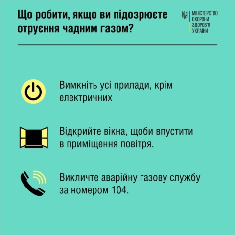 Якщо ви відчуваєте ці симптоми і підозрюєте, що причиною може бути чадний газ, насамперед — вимкніть усі прилади, крім електричних і відчиніть вікна, щоби впустити в приміщення повітря. Якщо погано почуваєтесь — зверніться до лікаря!