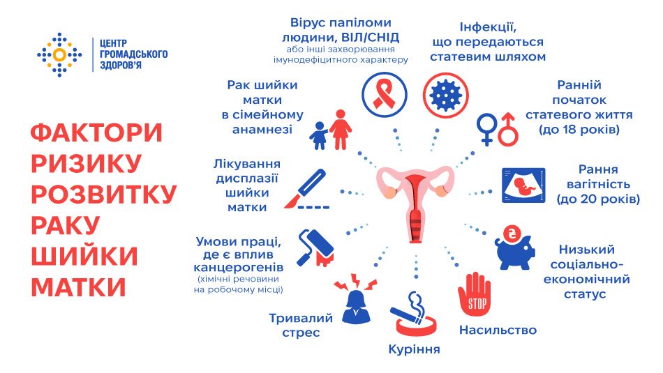Центр громадського здоров’я пояснює взаємозв’язок факторів ризику із розвитком виникнення раку шийки матки (РШМ).