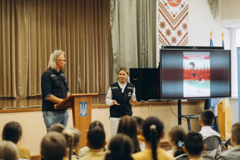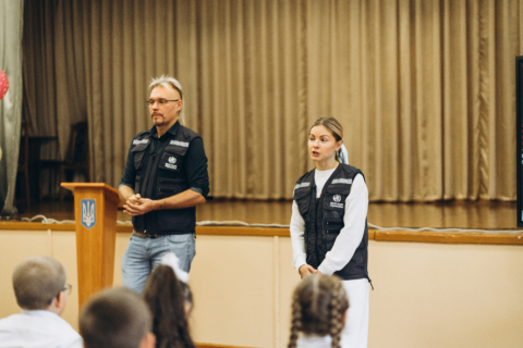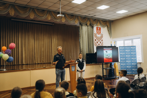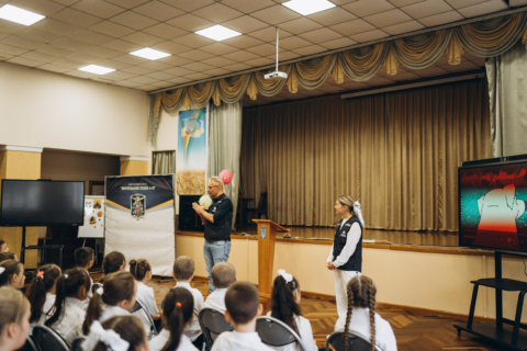 Представники Офісу Всесвітньої організації охорони здоров’я (ВООЗ) в Україні у рамках зустрічі провели урок профілактики сказу для учнів молодших класів у школі № 18.