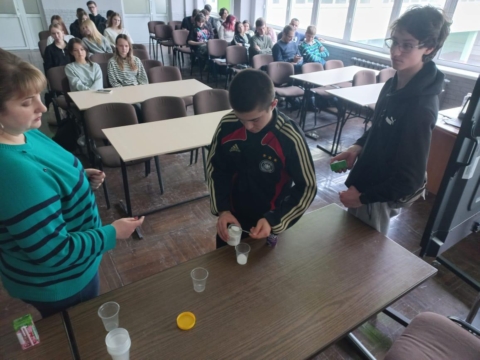Важливою складовою заняття була практична частина. Школярі самостійно рахували кількість цукру у звичних для них напоях. Такий наочний підхід дозволяє не лише краще засвоїти інформацію, а й оцінити власні харчові звички та їх можливі наслідки.
