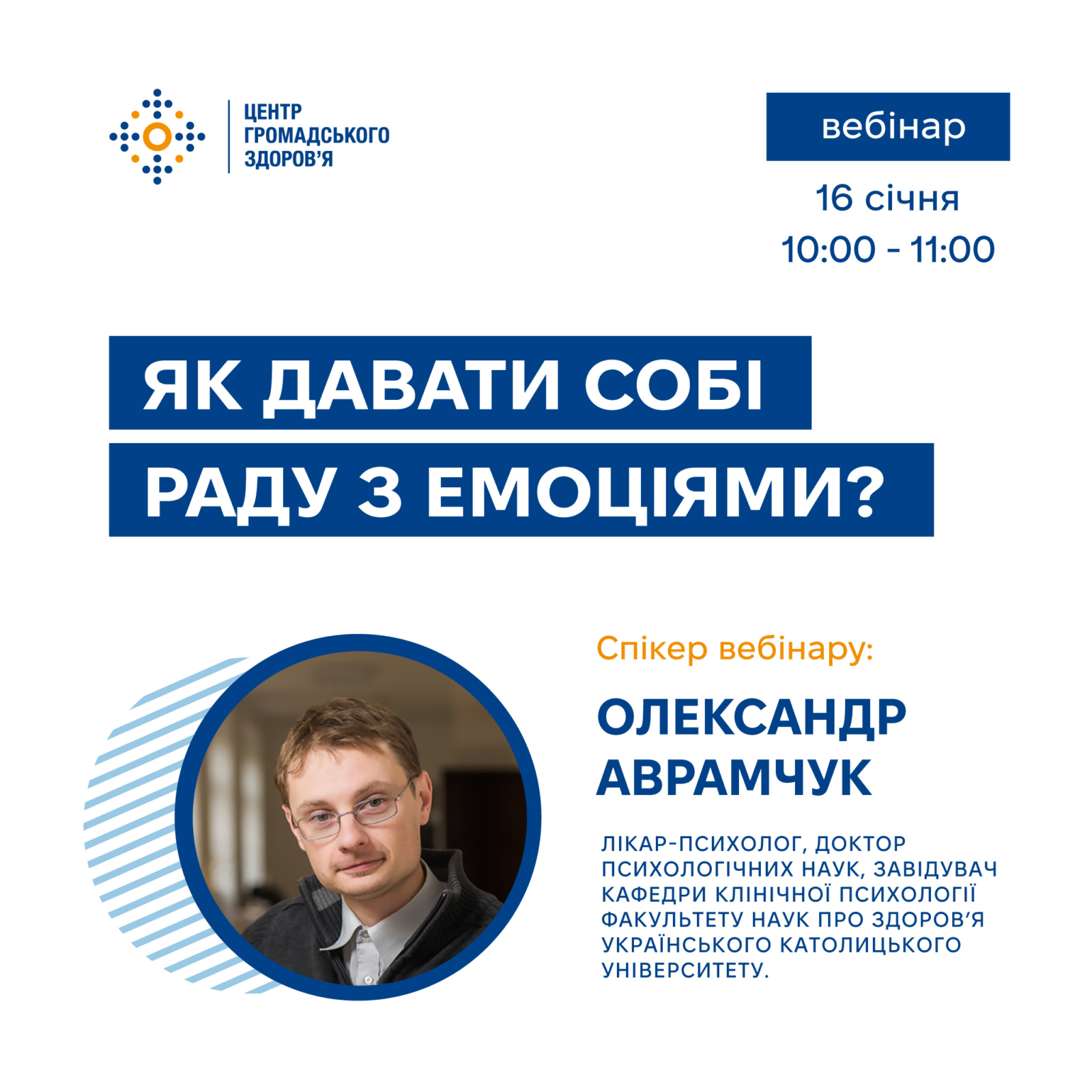Центр громадського здоров’я запрошує запрошує взяти участь у вебінарі «Як давати собі раду з емоціями?»