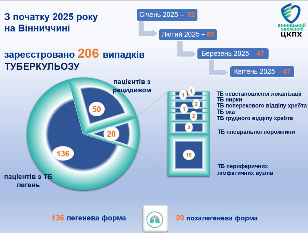 Туберкульоз на Вінниччині: дані за 4 місяці 2025 року