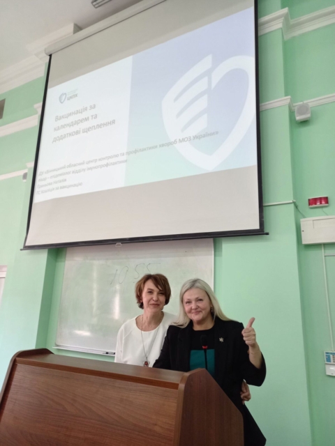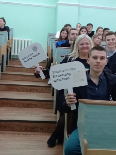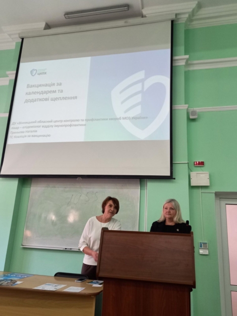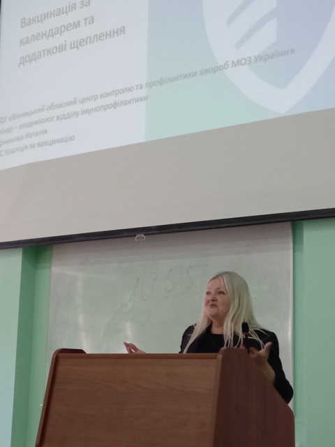 Лікар-епідеміолог Вінницького ОЦКПХ Наталія Гриньова спілкувалася зі студентами першого і другого курсів. Розповідала їм не тільки про важливість щеплень, а й про методи комунікацій для поширення важливої інформації на тему імунопрофілактики.